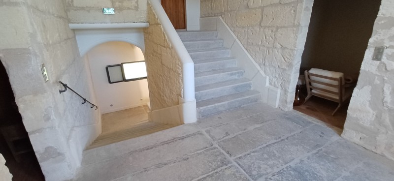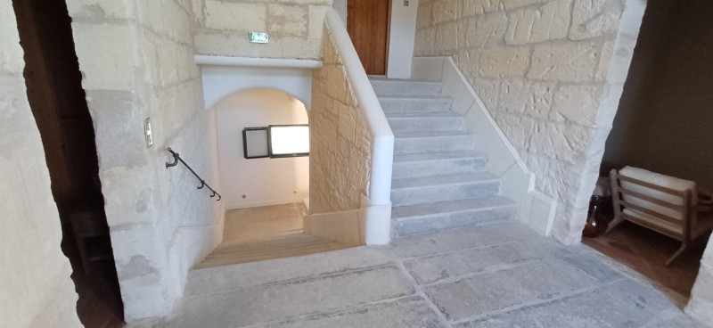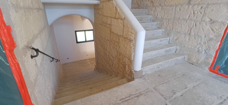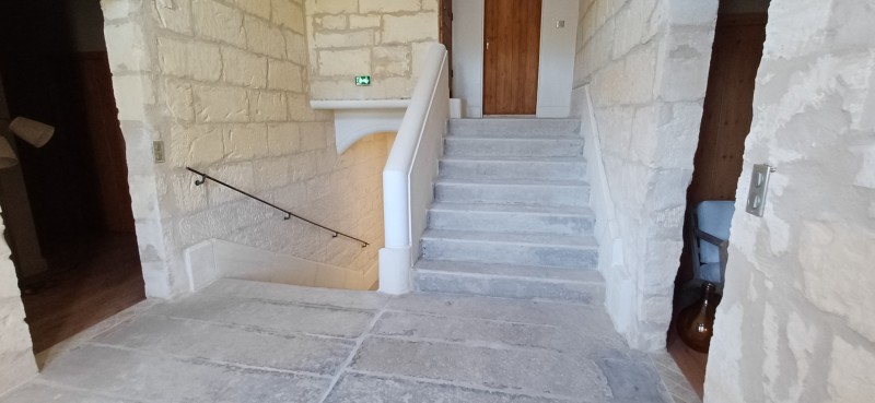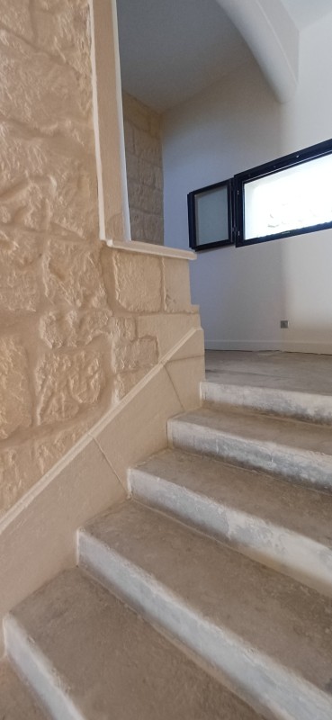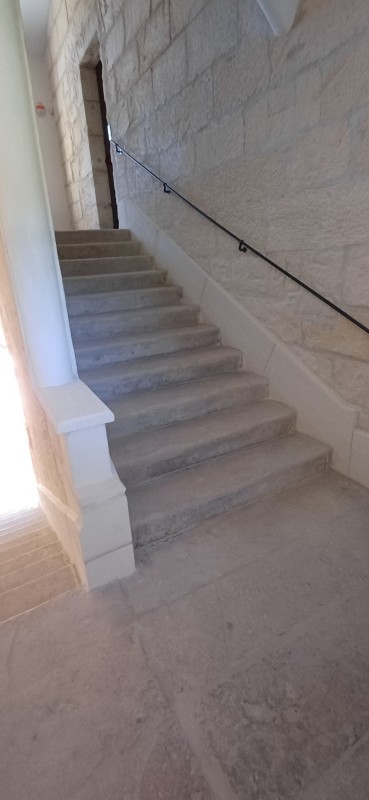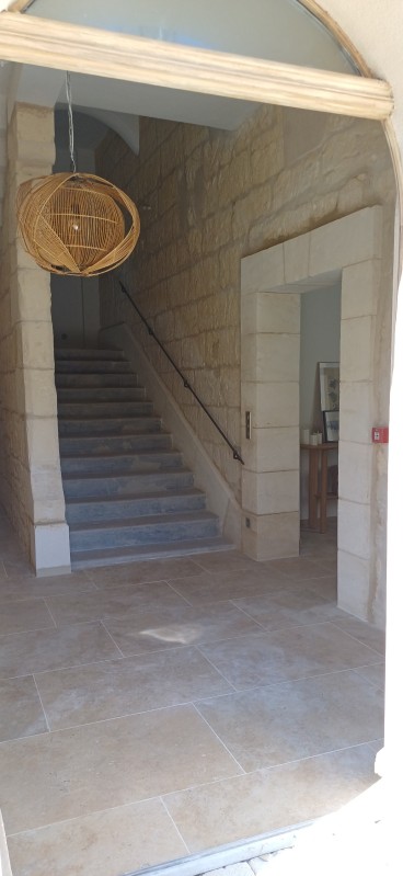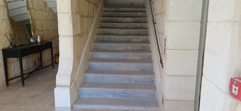 Nous avons réalisé la pose de limons d’escalier en pierre de Fontvieille, matériau caractéristique du bâti existant, afin de respecter l’authenticité du lieu. Chaque limon a été taillé sur mesure pour s’adapter parfaitement à chaque marche et garantir une harmonie visuelle.