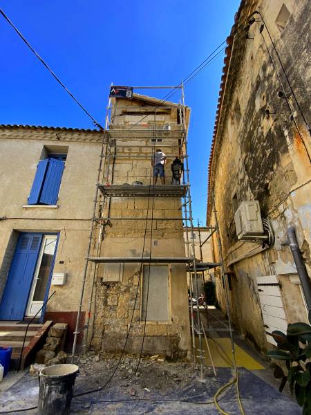 À Vallabrègues, dans le Gard, Ambiance Pierre a réalisé la rénovation d’une façade en appliquant un enduit traditionnel à la chaux. Ce travail a permis de redonner à l’ouvrage toute son authenticité, tout en le protégeant des agressions extérieures.