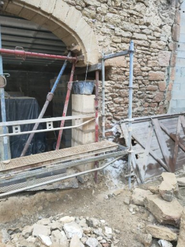 Les pierres les plus endommagées ont été retirées une à une, puis changées par des blocs neufs que nous avons soigneusement sélectionnés. L’idée était que la rénovation de la façade reste harmonieuse, sans contraste trop marqué. Pendant ces travaux, nous avons mis en place un étayage sérieux pour assurer la sécurité sur place. C’était indispensable: la structure était fragilisée.