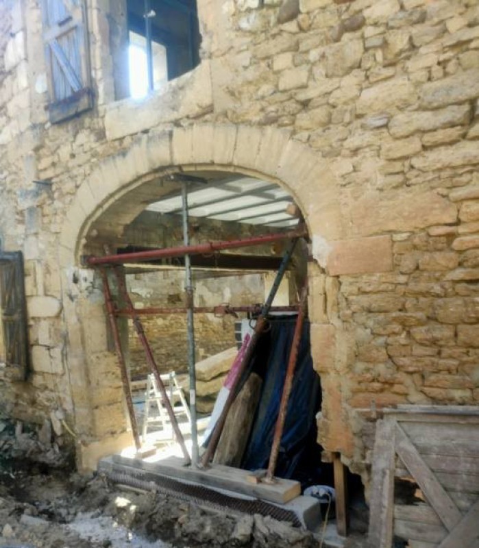 Notre entreprise Ambiance Pierre a été contactée pour la rénovation d'une façade sur Fournès (Gard) avec changement des pierres. Comme vous pouvez le voir sur les photos ci dessous, la voûte n’était plus bien en place et commençait à inquiéter les propriétaires. Spécialisée dans la taille de pierre dans le 30, notre équipe a pris le temps de se rendre chez nos clients et d’examiner l’ensemble avant de proposer une solution.